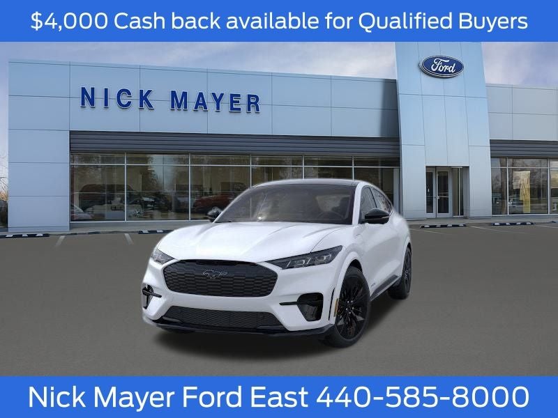 Nick Mayer Ford East Wickliffe is proud to offer this stunning 2025 Ford Mustang Mach-E in White Metallic This vehicle has been thoroughly inspected, ready to take home, and comes with the following features; Equipment Group 400A Standard Package, Interior Protection Package (1st & 2nd Row Floor Liners w/o Carpet Mats, Cargo Area Cover, and Cargo Floor Liner), 10 Speakers, 4-Wheel Disc Brakes, ABS brakes, Adaptive suspension, Air Conditioning, Alloy wheels, AM/FM radio: SiriusXM with 360L, Apple CarPlay/Android Auto, Auto High-beam Headlights, Auto-dimming Rear-View mirror, Automatic temperature control, Brake assist, Bumpers: body-color, Compass, Delay-off headlights, Driver door bin, Driver vanity mirror, Dual front impact airbags, Dual front side impact airbags, Electronic Stability Control, Emergency communication system: 911 Assist, Exterior Parking Camera Rear, Four wheel independent suspension, Front anti-roll bar, Front Bucket Seats, Front Center Armrest, Front dual zone A/C, Front reading lights, Fully automatic headlights, Garage door transmitter, Heated door mirrors, Heated front seats, Heated Perforated ActiveX Performance Seats, Heated steering wheel, Hood & Decklid Stripe/Door Graphics Delete, Illuminated entry, Internet access capable: FordPass Connect, Knee airbag, Low tire pressure warning, Memory seat, Mobile Power Cord (120V/240V), Navigation system: Connected Navigation, Occupant sensing airbag, Outside temperature display, Overhead airbag, Overhead console, Panic alarm, Panoramic Fixed-Glass Roof, Passenger door bin, Passenger vanity mirror, Power door mirrors, Power driver seat, Power Liftgate, Power passenger seat, Power steering, Power windows, Radio data system, Radio: B&O Sound System by Bang & Olufsen, Rain sensing wipers, Rear anti-roll bar, Rear seat center armrest, Rear side impact airbag, Rear window defroster, Rear window wiper, Remote keyless entry, Security system, SiriusXM w/360L, Speed control, Speed-sensing steering, Speed-Sensitive Wipers, Split folding rear seat, Spoiler, Steering wheel mounted audio controls, SYNC 4A w/Enhanced Voice Recognition, Telescoping steering wheel, Tilt steering wheel, Traction control, Trip computer, Turn signal indicator mirrors, Variably intermittent wipers, and Wheels: 20 Monochromatic High Gloss Black-Painted.