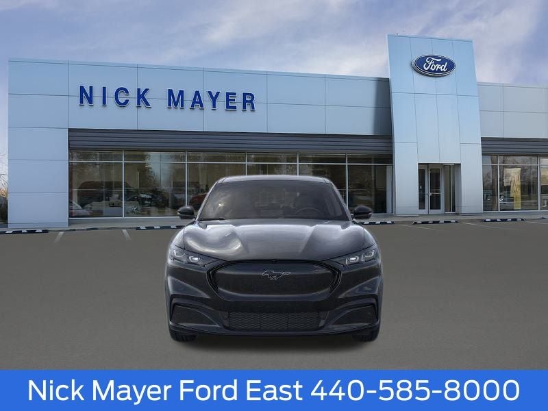 Nick Mayer Ford East Wickliffe is proud to offer this terrific-looking 2025 Ford Mustang Mach-E in Shadow Black This vehicle has been thoroughly inspected, ready to take home, and comes with the following features; Equipment Group 300A Standard Package, 10 Speakers, 4-Wheel Disc Brakes, ABS brakes, Air Conditioning, Alloy wheels, AM/FM radio: SiriusXM with 360L, Apple CarPlay/Android Auto, Auto High-beam Headlights, Auto-dimming Rear-View mirror, Automatic temperature control, Brake assist, Bumpers: body-color, Compass, Delay-off headlights, Driver door bin, Driver vanity mirror, Dual front impact airbags, Dual front side impact airbags, Electronic Stability Control, Emergency communication system: 911 Assist, Exterior Parking Camera Rear, Four wheel independent suspension, Front anti-roll bar, Front Bucket Seats, Front Center Armrest, Front dual zone A/C, Front reading lights, Fully automatic headlights, Garage door transmitter, Heated door mirrors, Heated front seats, Heated steering wheel, Heated/Ventilated Perforated ActiveX Bucket Seats, Illuminated entry, Internet access capable: FordPass Connect, Knee airbag, Low tire pressure warning, Memory seat, Mobile Power Cord (120V/240V), Navigation system: Connected Navigation, Occupant sensing airbag, Outside temperature display, Overhead airbag, Overhead console, Panic alarm, Panoramic Fixed-Glass Roof, Passenger door bin, Passenger vanity mirror, Power door mirrors, Power driver seat, Power Liftgate, Power passenger seat, Power steering, Power windows, Radio data system, Radio: B&O Sound System by Bang & Olufsen, Rain sensing wipers, Rear anti-roll bar, Rear seat center armrest, Rear side impact airbag, Rear window defroster, Rear window wiper, Remote keyless entry, Security system, SiriusXM w/360L, Speed control, Speed-sensing steering, Speed-Sensitive Wipers, Split folding rear seat, Spoiler, Steering wheel mounted audio controls, SYNC 4A w/Enhanced Voice Recognition, Telescoping steering wheel, Tilt steering wheel, Traction control, Trip computer, Turn signal indicator mirrors, Variably intermittent wipers, Ventilated front seats, and Wheels: 19 Bright Machined-Face Aluminum.