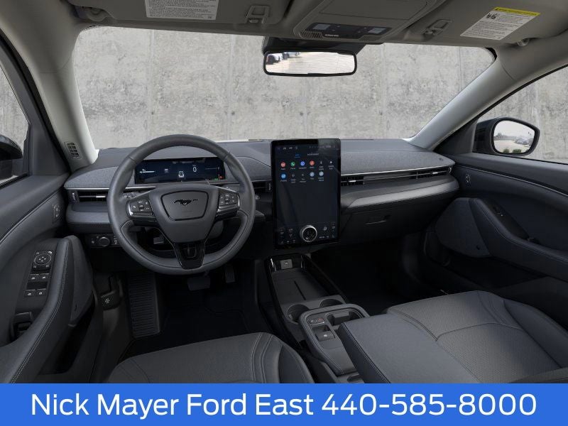 Nick Mayer Ford East Wickliffe is proud to offer this terrific-looking 2025 Ford Mustang Mach-E in Shadow Black This vehicle has been thoroughly inspected, ready to take home, and comes with the following features; Equipment Group 300A Standard Package, 10 Speakers, 4-Wheel Disc Brakes, ABS brakes, Air Conditioning, Alloy wheels, AM/FM radio: SiriusXM with 360L, Apple CarPlay/Android Auto, Auto High-beam Headlights, Auto-dimming Rear-View mirror, Automatic temperature control, Brake assist, Bumpers: body-color, Compass, Delay-off headlights, Driver door bin, Driver vanity mirror, Dual front impact airbags, Dual front side impact airbags, Electronic Stability Control, Emergency communication system: 911 Assist, Exterior Parking Camera Rear, Four wheel independent suspension, Front anti-roll bar, Front Bucket Seats, Front Center Armrest, Front dual zone A/C, Front reading lights, Fully automatic headlights, Garage door transmitter, Heated door mirrors, Heated front seats, Heated steering wheel, Heated/Ventilated Perforated ActiveX Bucket Seats, Illuminated entry, Internet access capable: FordPass Connect, Knee airbag, Low tire pressure warning, Memory seat, Mobile Power Cord (120V/240V), Navigation system: Connected Navigation, Occupant sensing airbag, Outside temperature display, Overhead airbag, Overhead console, Panic alarm, Panoramic Fixed-Glass Roof, Passenger door bin, Passenger vanity mirror, Power door mirrors, Power driver seat, Power Liftgate, Power passenger seat, Power steering, Power windows, Radio data system, Radio: B&O Sound System by Bang & Olufsen, Rain sensing wipers, Rear anti-roll bar, Rear seat center armrest, Rear side impact airbag, Rear window defroster, Rear window wiper, Remote keyless entry, Security system, SiriusXM w/360L, Speed control, Speed-sensing steering, Speed-Sensitive Wipers, Split folding rear seat, Spoiler, Steering wheel mounted audio controls, SYNC 4A w/Enhanced Voice Recognition, Telescoping steering wheel, Tilt steering wheel, Traction control, Trip computer, Turn signal indicator mirrors, Variably intermittent wipers, Ventilated front seats, and Wheels: 19 Bright Machined-Face Aluminum.