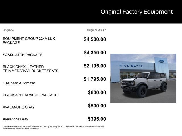 Factory MSRP: $65,730 $4,711 off MSRP! 2026 Ford Bronco Badlands Avalanche 4WD 10-Speed Automatic 2.3L EcoBoost I-4