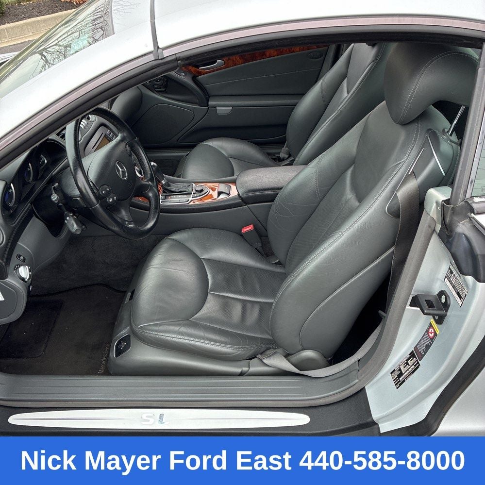 Nick Mayer Ford East Wickliffe is proud to offer this great 2006 Mercedes-Benz SL-Class in Iridium Silver Metallic This vehicle has been thoroughly inspected, ready to take home, and comes with the following features; Charcoal w/Premium Leather Seat Trim, 18 5-Spoke Alloy Wheels, 4-Wheel Disc Brakes, 8 Speakers, ABS brakes, Adaptive suspension, Air Conditioning, Alloy wheels, AM/FM radio, AM/FM Stereo/Weatherband/CD w/MP3, Anti-whiplash front head restraints, Auto tilt-away steering wheel, Auto-dimming door mirrors, Auto-dimming Rear-View mirror, Auto-leveling suspension, Automatic temperature control, Brake assist, Bumpers: body-color, CD player, Child-Seat-Sensing Airbag, Convertible HardTop, Convertible roof lining, Convertible roof wind blocker, Delay-off headlights, Driver door bin, Driver vanity mirror, Dual front impact airbags, Dual front side impact airbags, Electronic Stability Control, Emergency communication system: Tele Aid, Four wheel independent suspension, Front Bucket Seats, Front Center Armrest w/Storage, Front dual zone A/C, Front fog lights, Front reading lights, Garage door transmitter: Homelink, Genuine wood console insert, Genuine wood door panel insert, Glass rear window, Head restraints memory, Headlight cleaning, Heated door mirrors, Heated Front Bucket Seats, Heated front seats, High intensity discharge headlights: Xenon, HVAC memory, Illuminated entry, Integrated roll-over protection, Knee airbag, Leather Shift Knob, Leather steering wheel, Low tire pressure warning, Memory seat, Navigation system: COMAND®, Occupant sensing airbag, Outside temperature display, Panic alarm, Passenger door bin, Passenger vanity mirror, Power adjustable front head restraints, Power convertible roof, Power door mirrors, Power driver seat, Power passenger seat, Power steering, Power windows, Premium audio system: COMAND®, Premium Leather Seat Trim, Rain sensing wipers, Rear fog lights, Rear window defroster, Remote CD player, Remote keyless entry, Security system, Speed control, Speed-sensing steering, Steering wheel memory, Steering wheel mounted audio controls, Tachometer, Telescoping steering wheel, Tilt steering wheel, Traction control, Trip computer, Turn signal indicator mirrors, Variably intermittent wipers, and Weather band radio.