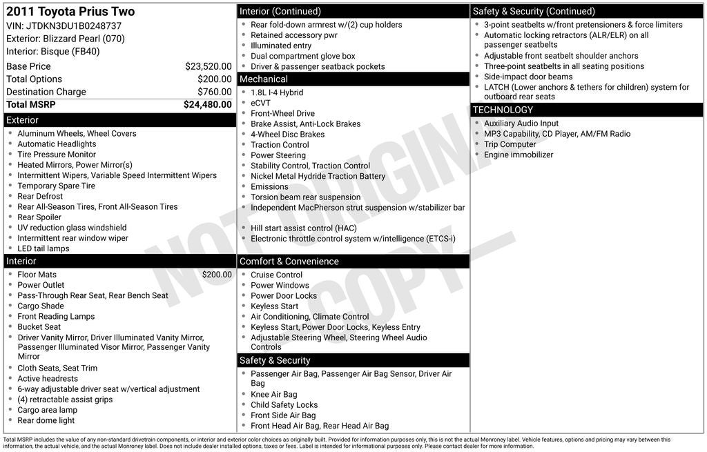 2011 Toyota Prius Two