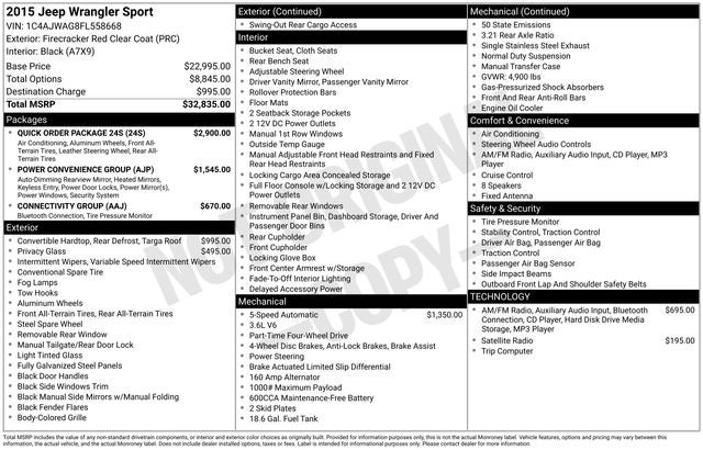 Don't miss your chance to make this exceptional 2015 Jeep Wrangler Sport your own. Contact us today to schedule a test drive and experience the thrill of Jeep ownership for yourself.