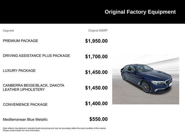 Discover the epitome of luxury and performance in this stunning 2019 BMW 5 Series 530i xDrive. With its sleek blue exterior and premium Canberra Beige/Black Dakota leather interior, this vehicle exudes sophistication and style. Boasting a powerful 2.0L 4-cylinder engine paired with an 8-speed automatic transmission and all-wheel drive, this 5 Series delivers an exceptional driving experience.
