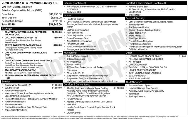 2020 Cadillac XT4 Premium Luxury