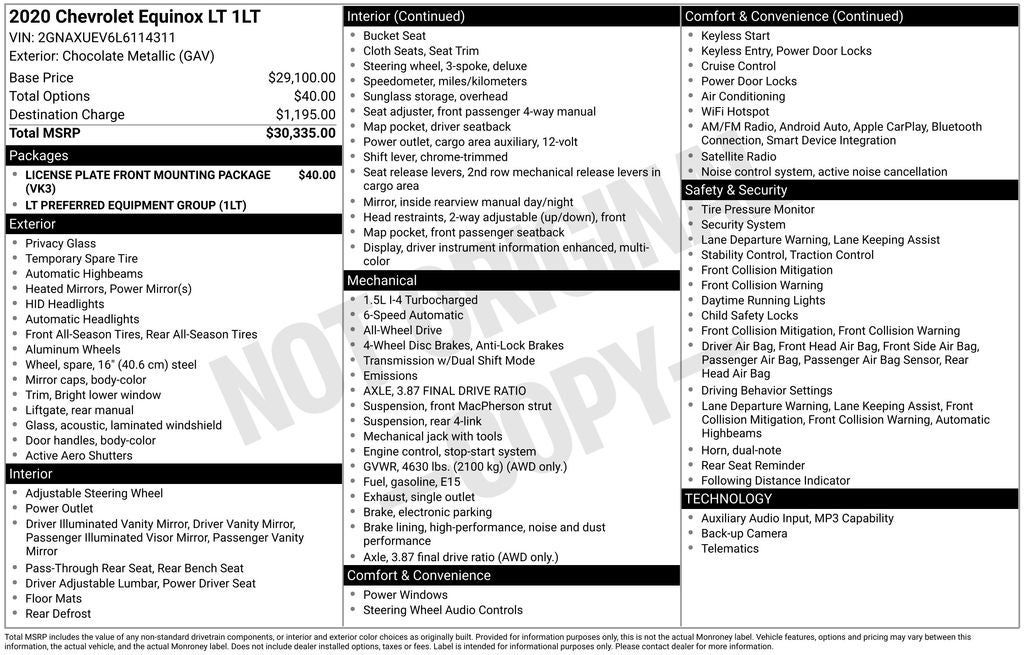 - Radio: Chevrolet Infotainment 3 System w/AM/FM