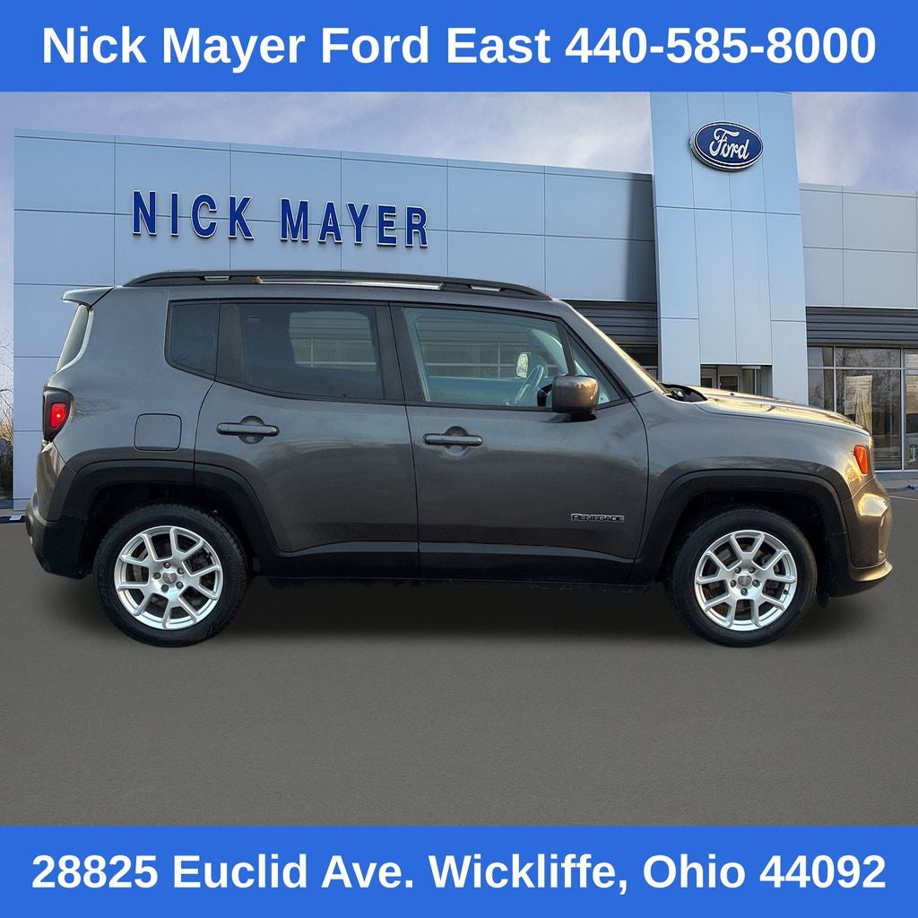 Nick Mayer Ford East Wickliffe is proud to offer this outstanding 2020 Jeep Renegade in Granite Crystal Metallic Clearcoat This vehicle has been thoroughly inspected, ready to take home, and comes with the following features; Passive Entry Remote Start Package, Quick Order Package 2XB, 17 x 7.0 Aluminum Wheels, 3.734 Final Drive Ratio, 4-Wheel Disc Brakes, 6 Speakers, ABS brakes, Air Conditioning, Alloy wheels, AM/FM radio: SiriusXM, Anti-whiplash front head restraints, Apple CarPlay/Android Auto, Automatic temperature control, Brake assist, Compass, Delay-off headlights, Driver door bin, Driver vanity mirror, Dual front impact airbags, Dual front side impact airbags, Electronic Stability Control, Emergency communication system, Four wheel independent suspension, Front anti-roll bar, Front Bucket Seats, Front Center Armrest, Front dual zone A/C, Front fog lights, Front reading lights, Fully automatic headlights, Heated door mirrors, Illuminated entry, Knee airbag, Low tire pressure warning, Manual Adjust 4-Way Front Passenger Seat, Normal Duty Suspension, Occupant sensing airbag, Outside temperature display, Overhead airbag, Panic alarm, ParkView Rear Back-Up Camera, Passenger door bin, Passenger vanity mirror, Power door mirrors, Power steering, Power windows, Premium Cloth Bucket Seats, Radio data system, Radio: Uconnect 4 w/7 Display, Rear anti-roll bar, Rear window defroster, Rear window wiper, Remote keyless entry, Roof rack: rails only, Speed control, Split folding rear seat, Spoiler, Steering wheel mounted audio controls, Tachometer, Telescoping steering wheel, Tilt steering wheel, Traction control, Trip computer, Variably intermittent wipers, and Voltmeter.