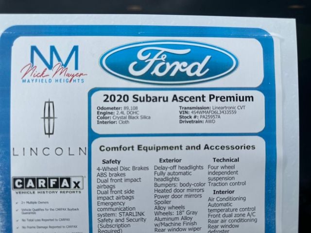 Experience the exceptional blend of capability, comfort, and technology that the 2020 Subaru Ascent Premium has to offer. Visit our showroom today and let us demonstrate how this remarkable SUV can elevate your driving experience.