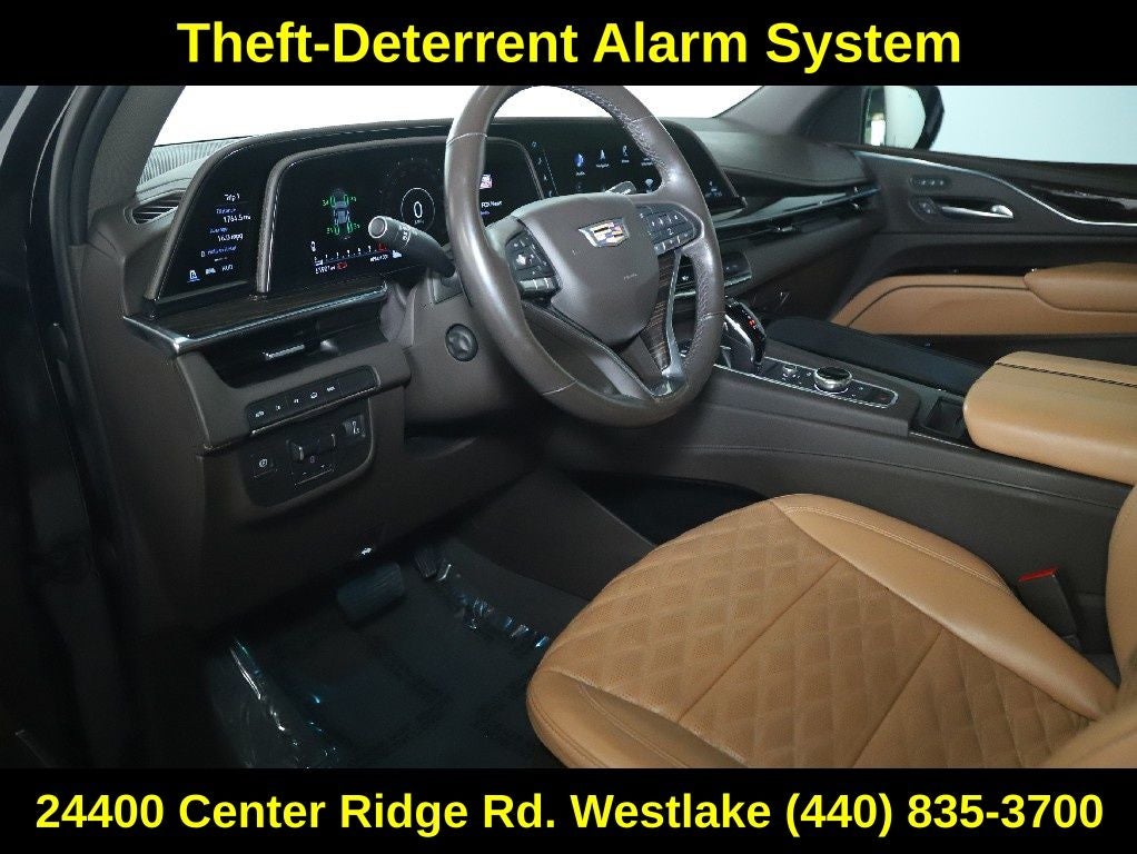 Technological innovation is at the heart of this Escalade. The RECONFIGURABLE FULL-COLOR HEAD-UP DISPLAY and REAR CAMERA MIRROR provide enhanced visibility and situational awareness, while features like LANE KEEP ASSIST, REAR CROSS TRAFFIC ALERT, and AUTOMATIC EMERGENCY BRAKING offer added peace of mind. The INTEGRATED TRAILER BRAKE CONTROLLER and IN-VEHICLE TRAILERING SYSTEM APP make towing a breeze.