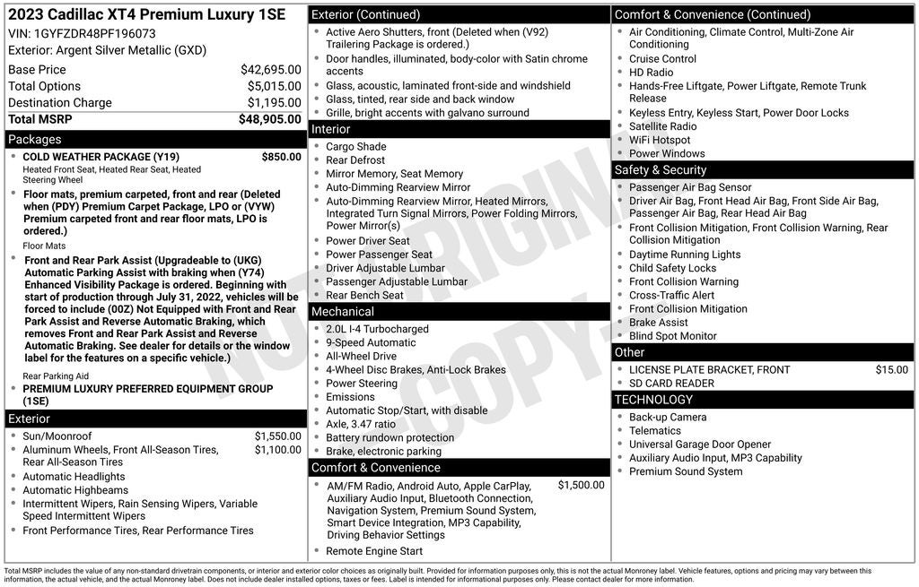 Whether navigating the urban jungle or embarking on a weekend getaway, the 2023 Cadillac XT4 Premium Luxury is the perfect companion. Its blend of luxury, performance, and cutting-edge technology makes it a standout in the crowded SUV market. We invite you to experience the difference for yourself and schedule a test drive at our dealership today.