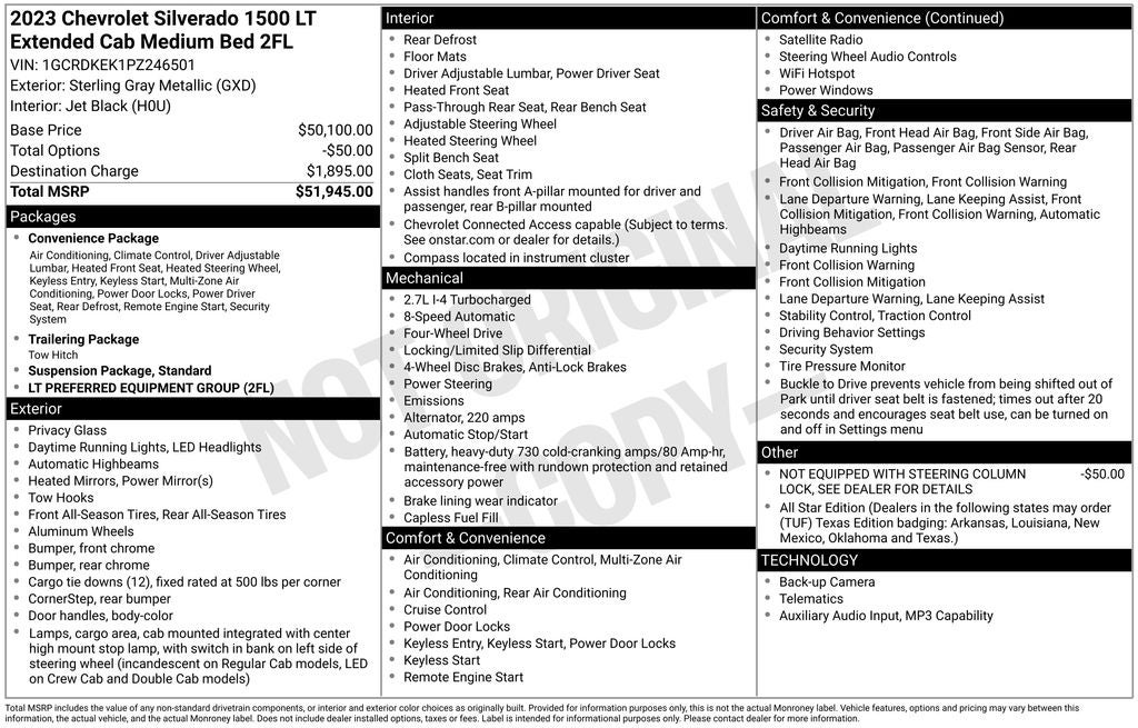 Safety is a top priority, and the 2023 Silverado 1500 LT is equipped with a suite of advanced driver-assistance technologies, including Automatic Emergency Braking, Forward Collision Alert, Lane Keep Assist with Lane Departure Warning, and more. These features work together to help keep you and your loved ones secure on the road.