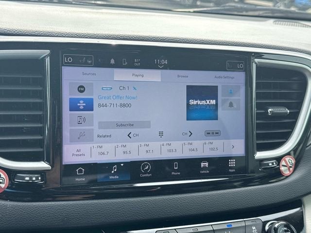 Nick Mayer Chevy Buick GMC of Dickson is proud to offer this wonderful 2023 Chrysler Pacifica in Granite Crystal Metallic Clearcoat This vehicle has been thoroughly inspected, ready to take home, and comes with the following features; Quick Order Package 27L, Pacifica Touring L, 4D Passenger Van, 3.6L V6 24V VVT, 9-Speed 948TE Automatic, FWD, Granite Crystal Metallic Clearcoat, Black/Alloy/Black Artificial Leather, 10.1 Touchscreen Display, 17 x 7.0 Aluminum Wheels, 3.25 Axle Ratio, 3rd row seats: split-bench, 4-Wheel Disc Brakes, 6 Speakers, ABS brakes, Air Conditioning, Alloy wheels, AM/FM radio: SiriusXM, Apple CarPlay, Apple CarPlay/Android Auto, Audio memory, Automatic temperature control, Black Seats, Brake assist, Bumpers: body-color, Caprice Leatherette Bucket Seats, Compass, Delay-off headlights, Disassociated Touchscreen Display, Driver door bin, Driver vanity mirror, Driver's Seat Mounted Armrest, Dual front impact airbags, Dual front side impact airbags, Electronic Stability Control, Four wheel independent suspension, Front anti-roll bar, Front Bucket Seats, Front dual zone A/C, Front Fascia Air Deflectors, Front fog lights, Front reading lights, Fully automatic headlights, Google Android Auto, GPS Antenna Input, Heated door mirrors, Heated front seats, Heated steering wheel, Illuminated entry, Integrated Active Noise Cancellation, Integrated Center Stack Radio, Knee airbag, Low tire pressure warning, Memory seat, Occupant sensing airbag, Outside temperature display, Overhead airbag, Overhead console, Panic alarm, ParkView Rear Back-Up Camera, Passenger door bin, Passenger seat mounted armrest, Passenger vanity mirror, Power door mirrors, Power driver seat, Power Liftgate, Power steering, Power windows, Radio data system, Radio: Uconnect 5 w/10.1 Display, Rain sensing wipers, Rear air conditioning, Rear reading lights, Rear window defroster, Rear window wiper, Reclining 3rd row seat, Remote keyless entry, Security system, Speed control, Split folding rear seat, Spoiler, Steering wheel mounted audio controls, Tachometer, Telescoping steering wheel, Tilt steering wheel, Touring Suspension, Traction control, Trip computer, Turn signal indicator mirrors, USB Host Flip, Variably intermittent wipers, and Voltmeter. Pacifica Touring L, 4D Passenger Van, 3.6L V6 24V VVT, 9-Speed 948TE Automatic, FWD, Granite Crystal Metallic Clearcoat, Black/Alloy/Black Artificial Leather.