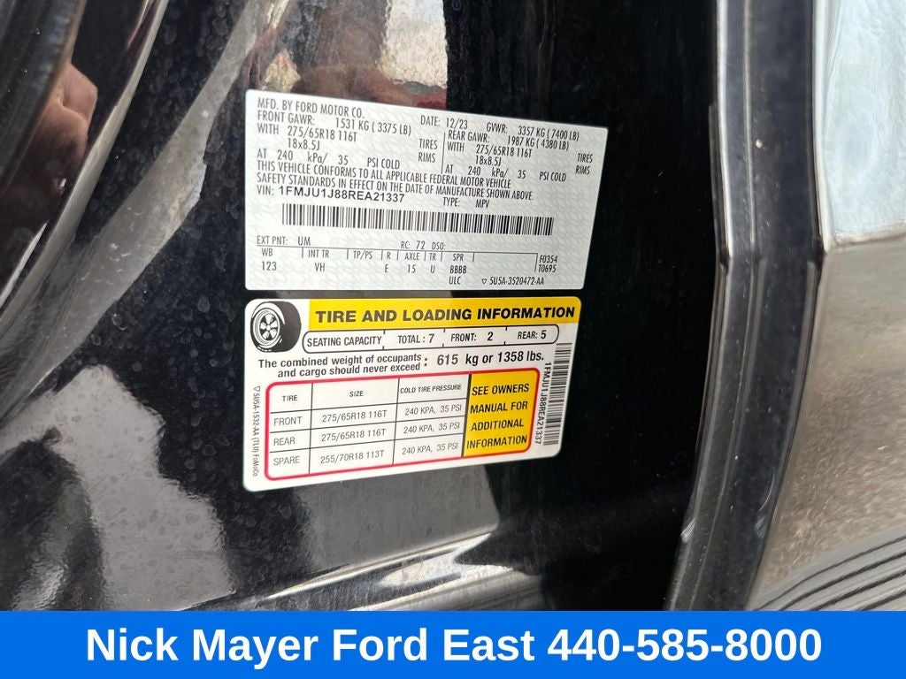 Nick Mayer Ford East Wickliffe is proud to offer this wonderful 2024 Ford Expedition in Black Metallic This vehicle has been thoroughly inspected, ready to take home, and comes with the following features; Equipment Group 202A High Package (110V/150W AC Power Outlet, 2nd Row Power-Folding Captain's Chairs, 3rd Row Vinyl Head Restraints, 4-Door Intelligent Access (Lock/Unlock), Accent Color Painted Rear Bumper, ActiveX-Trimmed 1st & 2nd Row Seats, Advanced Security Pack, Ambient Lighting, Heated Steering Wheel, Heated/Ventilated Front Seats, Power Liftgate, Power Tilt/Telescopic Steering Wheel w/Memory, Power-Adjustable Pedals w/Memory, Power-Folding Sideview Mirrors w/Autofold, Remote Start, SecuriCode Keyless Entry Pad, and Wireless Charging Pad), 4WD, 18 Machined-Face Aluminum Wheels, 3.31 Axle Ratio, 3rd row seats: split-bench, 4-Wheel Disc Brakes, 6 Speakers, ABS brakes, Air Conditioning, Alloy wheels, AM/FM radio: SiriusXM with 360L, Auto High-beam Headlights, Auto-dimming Rear-View mirror, Automatic temperature control, Brake assist, Bumpers: body-color, Cloth Front Captain's Chairs, Compass, Delay-off headlights, Driver door bin, Driver vanity mirror, Dual front impact airbags, Dual front side impact airbags, Electronic Stability Control, Emergency communication system: SYNC 4 911 Assist, Exterior Parking Camera Rear, Four wheel independent suspension, Front anti-roll bar, Front Bucket Seats, Front Center Armrest, Front dual zone A/C, Front License Plate Bracket, Front reading lights, Fully automatic headlights, Garage door transmitter, Heated door mirrors, Illuminated entry, Leather steering wheel, Low tire pressure warning, Navigation system: Connected Navigation, Occupant sensing airbag, Outside temperature display, Overhead airbag, Overhead console, Panic alarm, Passenger door bin, Passenger vanity mirror, Power door mirrors, Power driver seat, Power steering, Power windows, Radio data system, Radio: AM/FM Stereo w/MP3 Capable, Rear air conditioning, Rear anti-roll bar, Rear reading lights, Rear window defroster, Rear window wiper, Reclining 3rd row seat, Remote keyless entry, Security system, SiriusXM w/360L, Speed control, Speed-sensing steering, Speed-Sensitive Wipers, Split folding rear seat, Spoiler, Steering wheel mounted audio controls, SYNC 4 w/Enhanced Voice Recognition, Tachometer, Telescoping steering wheel, Tilt steering wheel, Traction control, Trip computer, Variably intermittent wipers, and Voltmeter.