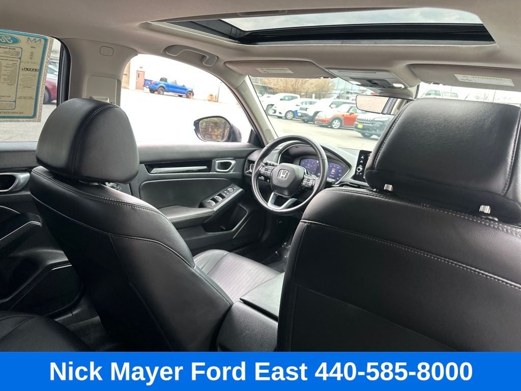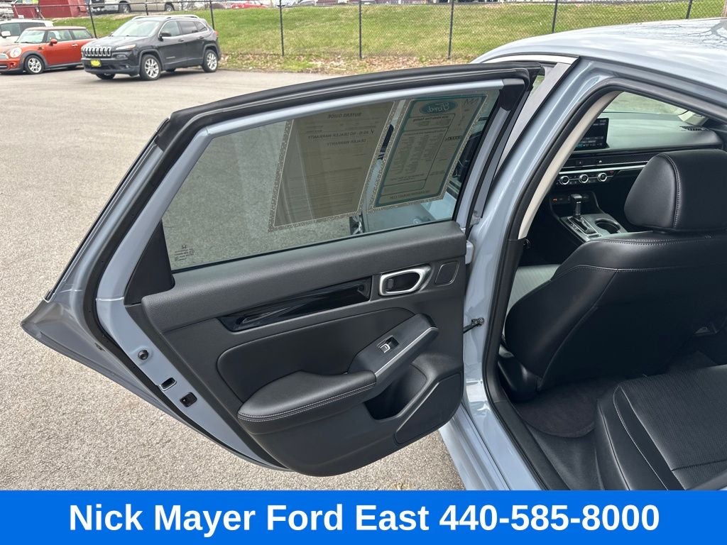 Nick Mayer Ford East Wickliffe is proud to offer this great 2024 Honda Civic in Morning Mist Metallic This vehicle has been thoroughly inspected, ready to take home, and comes with the following features; Black w/Leather-Trimmed Seating Surfaces, 12 Speakers, 4-Wheel Disc Brakes, ABS brakes, Adaptive Cruise Control: Adaptive Cruise Control (ACC) with Low-Speed Follow, Air Conditioning, Alloy wheels, AM/FM radio: SiriusXM, Apple CarPlay/Android Auto, Auto High-beam Headlights, Auto-dimming Rear-View mirror, Automatic temperature control, Blind Spot Information (BSI) System warning, Bose Premium Audio System, Brake assist, Bumpers: body-color, Compass, Delay-off headlights, Driver door bin, Driver vanity mirror, Dual front impact airbags, Dual front side impact airbags, Electronic Stability Control, Emergency communication system: HondaLink, Exterior Parking Camera Rear, Four wheel independent suspension, Front anti-roll bar, Front Bucket Seats, Front Center Armrest, Front dual zone A/C, Front fog lights, Front reading lights, Fully automatic headlights, Garage door transmitter: HomeLink, Heated door mirrors, Heated Front Bucket Seats, Heated front seats, Illuminated entry, Knee airbag, Leather Shift Knob, Leather steering wheel, Leather-Trimmed Seating Surfaces, Low tire pressure warning, Navigation system: Honda Satellite-Linked Navigation System, Occupant sensing airbag, Outside temperature display, Overhead airbag, Overhead console, Panic alarm, Passenger door bin, Passenger vanity mirror, Power door mirrors, Power driver seat, Power moonroof, Power passenger seat, Power steering, Power windows, Radio data system, Rain sensing wipers, Rear anti-roll bar, Rear seat center armrest, Rear side impact airbag, Rear window defroster, Remote keyless entry, Security system, Speed control, Speed-sensing steering, Split folding rear seat, Steering wheel mounted audio controls, Tachometer, Telescoping steering wheel, Tilt steering wheel, Traction control, Trip computer, Turn signal indicator mirrors, Variably intermittent wipers, and Wheels: 18 Alloy w/Gloss Shark Gray Inserts.