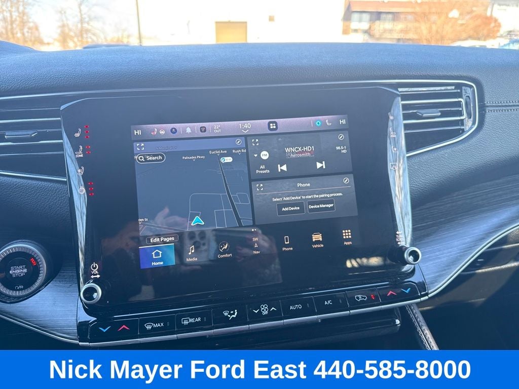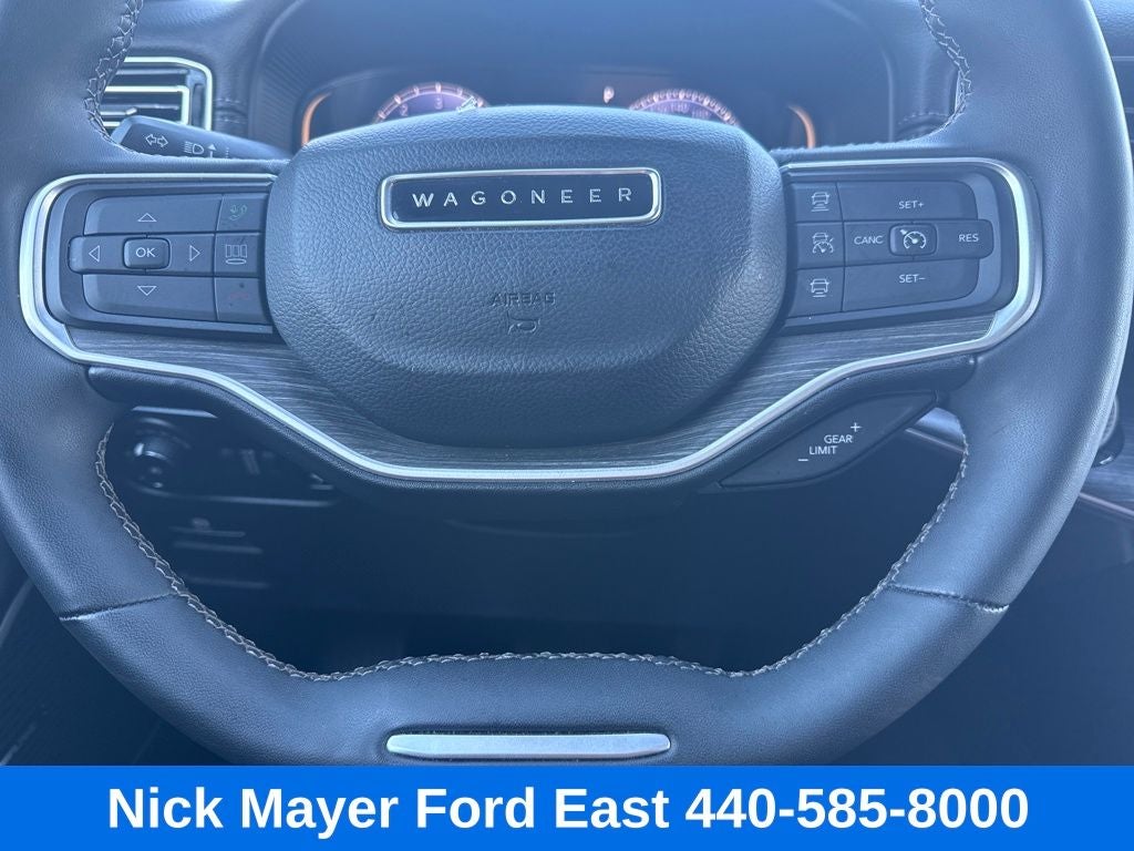 Nick Mayer Ford East Wickliffe is proud to offer this superb 2024 Jeep Wagoneer in Diamond Black Crystal Pearlcoat This vehicle has been thoroughly inspected, ready to take home, and comes with the following features; 10 Speakers, 3.55 Rear Axle Ratio, 3rd row seats: bench, 4-Wheel Disc Brakes, ABS brakes, Adjustable pedals, Air Conditioning, Alloy wheels, AM/FM radio: SiriusXM with 360L, Anti-whiplash front head restraints, Apple CarPlay/Android Auto, Audio memory, Auto High-beam Headlights, Auto-dimming door mirrors, Auto-dimming Rear-View mirror, Auto-leveling suspension, Automatic temperature control, Brake assist, Bumpers: body-color, Compass, Delay-off headlights, Driver door bin, Driver vanity mirror, Driver's Seat Mounted Armrest, Dual front impact airbags, Dual front side impact airbags, Electronic Stability Control, Emergency communication system: Wagoneer Connect, Exterior Parking Camera Rear, Four wheel independent suspension, Front anti-roll bar, Front Bucket Seats, Front Center Armrest w/Storage, Front dual zone A/C, Front fog lights, Front reading lights, Fully automatic headlights, Garage door transmitter, Genuine wood console insert, Genuine wood dashboard insert, Genuine wood door panel insert, Heated door mirrors, Heated front seats, Heated rear seats, Heated steering wheel, Illuminated entry, Knee airbag, Leather Trimmed Bucket Seats, Low tire pressure warning, Memory seat, Navigation System, Normal Duty Suspension, Occupant sensing airbag, Outside temperature display, Overhead airbag, Overhead console, Panic alarm, Passenger door bin, Passenger seat mounted armrest, Passenger vanity mirror, Pedal memory, Power adjustable front head restraints, Power door mirrors, Power driver seat, Power Liftgate, Power passenger seat, Power steering, Power windows, Radio data system, Radio: Uconnect 5 Nav w/10.1 Display, Rain sensing wipers, Rear air conditioning, Rear anti-roll bar, Rear dual zone A/C, Rear reading lights, Rear seat center armrest, Rear window defroster, Rear window wiper, Reclining 3rd row seat, Remote keyless entry, Security system, Speed control, Speed-sensing steering, Speed-Sensitive Wipers, Split folding rear seat, Steering wheel memory, Steering wheel mounted audio controls, Tachometer, Telescoping steering wheel, Tilt steering wheel, Traction control, Trip computer, Turn signal indicator mirrors, Variably intermittent wipers, Ventilated front seats, and Voltmeter.