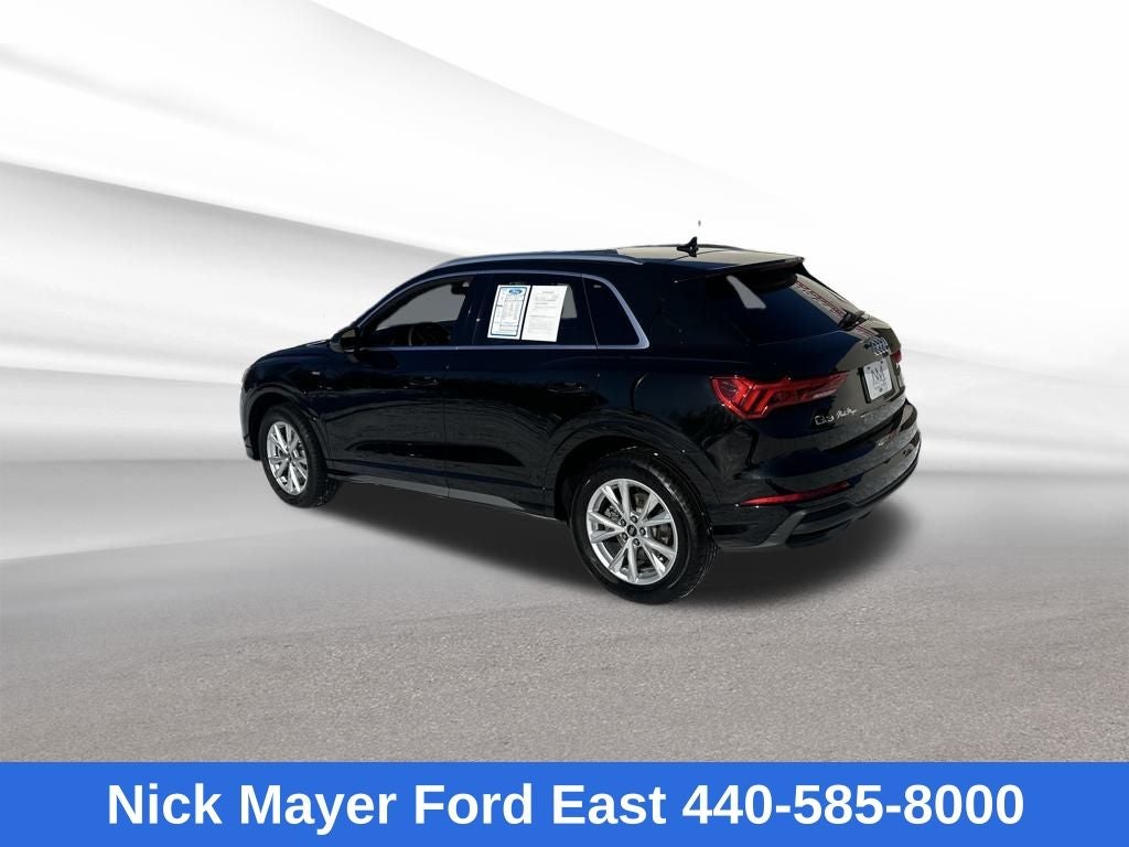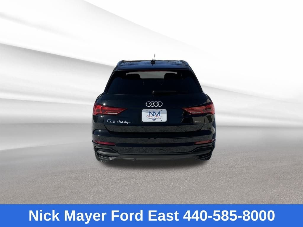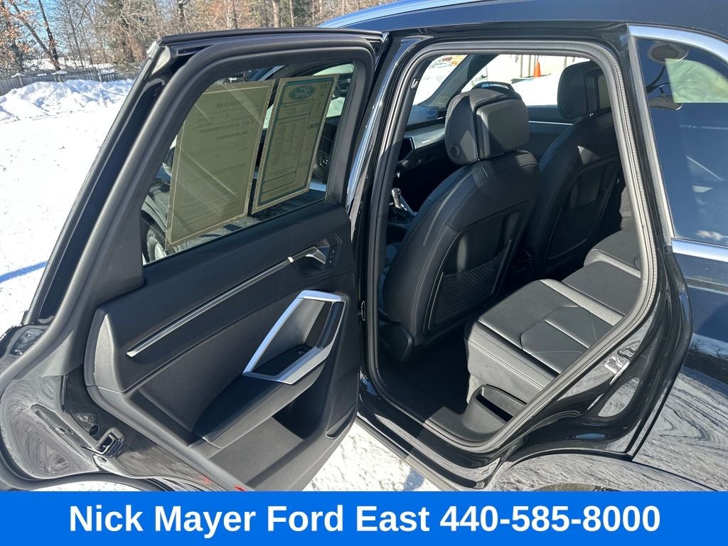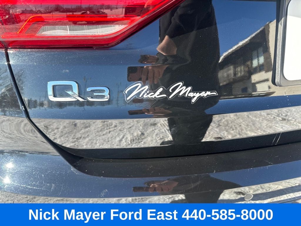 Nick Mayer Ford East Wickliffe is proud to offer this superb-looking 2025 Audi Q3 in Mythos Black Metallic This vehicle has been thoroughly inspected, ready to take home, and comes with the following features; 10 Speakers, 4-Wheel Disc Brakes, ABS brakes, Air Conditioning, Alloy wheels, AM/FM radio, Audi smartphone interface (Apple CarPlay/Android Auto), Auto High-beam Headlights, Automatic temperature control, Brake assist, Bumpers: body-color, Delay-off headlights, Driver door bin, Driver vanity mirror, Dual front impact airbags, Dual front side impact airbags, Electronic Stability Control, Emergency communication system: Audi connect CARE, Exterior Parking Camera Rear, Four wheel independent suspension, Front anti-roll bar, Front Bucket Seats, Front Center Armrest, Front dual zone A/C, Front fog lights, Front reading lights, Fully automatic headlights, Heated door mirrors, Heated Front Bucket Seats, Heated front seats, Illuminated entry, Knee airbag, Leather Seating Surfaces, Leather Shift Knob, Leather steering wheel, Low tire pressure warning, Occupant sensing airbag, Outside temperature display, Overhead airbag, Overhead console, Panic alarm, Passenger door bin, Passenger vanity mirror, Power door mirrors, Power driver seat, Power Liftgate, Power moonroof: Panoramic, Power passenger seat, Power steering, Power windows, Radio data system, Radio: Audi Sound System, Rain sensing wipers, Rear air conditioning, Rear anti-roll bar, Rear reading lights, Rear seat center armrest, Rear window defroster, Rear window wiper, Remote keyless entry, Speed control, Speed-sensing steering, Split folding rear seat, Spoiler, Steering wheel mounted audio controls, Tachometer, Telescoping steering wheel, Tilt steering wheel, Traction control, Trip computer, Turn signal indicator mirrors, Variably intermittent wipers, and Wheels: 18 5-V-Spoke-S Design.