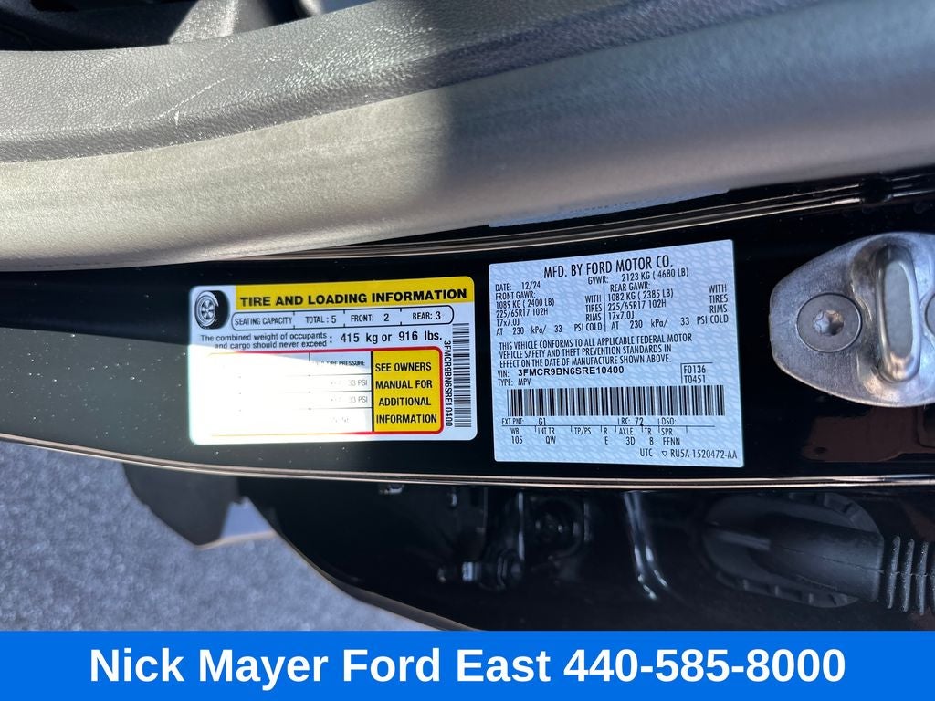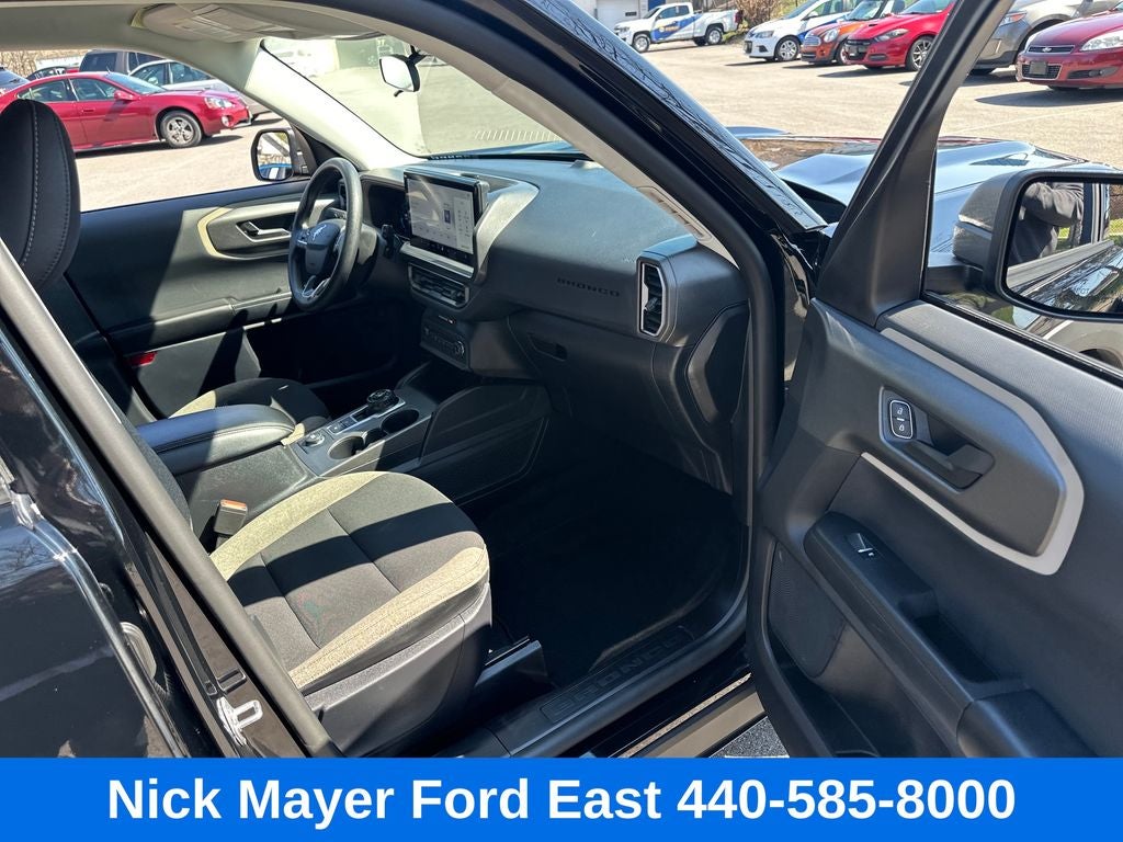 Nick Mayer Ford East Wickliffe is proud to offer this charming 2025 Ford Bronco Sport in Black This vehicle has been thoroughly inspected, ready to take home, and comes with the following features; 4-Wheel Disc Brakes, 6 Speakers, ABS brakes, Air Conditioning, Alloy wheels, AM/FM radio: SiriusXM, AM/FM Stereo, Auto High-beam Headlights, Automatic temperature control, Brake assist, Cloth w/Easy-to-Clean Front Bucket Seats, Compass, Delay-off headlights, Driver door bin, Driver vanity mirror, Dual front impact airbags, Dual front side impact airbags, Electronic Stability Control, Emergency communication system: SYNC 4 911 Assist, Four wheel independent suspension, Front anti-roll bar, Front Bucket Seats, Front Center Armrest, Front reading lights, Fully automatic headlights, Heated door mirrors, Illuminated entry, Knee airbag, Low tire pressure warning, Occupant sensing airbag, Outside temperature display, Overhead airbag, Overhead console, Panic alarm, Passenger door bin, Passenger vanity mirror, Power door mirrors, Power steering, Power windows, Radio data system, Rear anti-roll bar, Rear Parking Sensors, Rear reading lights, Rear seat center armrest, Rear window defroster, Rear window wiper, Remote keyless entry, Security system, SiriusXM, Speed control, Speed-sensing steering, Speed-Sensitive Wipers, Split folding rear seat, Steering wheel mounted audio controls, SYNC 4 w/Enhanced Voice Recognition, Tachometer, Telescoping steering wheel, Tilt steering wheel, Traction control, Trip computer, Variably intermittent wipers, and Wheels: 17 Carbonized Gray-Painted Aluminum.
